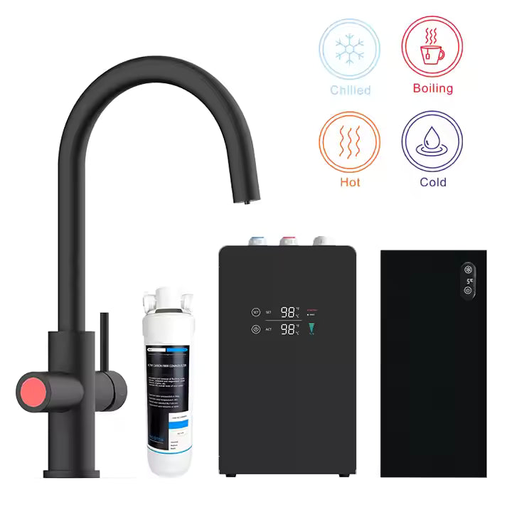 Iwater Modern Luxury Kitchen Black Set Instant Heater Under Sink Filter System Hot and Cold Water Faucet